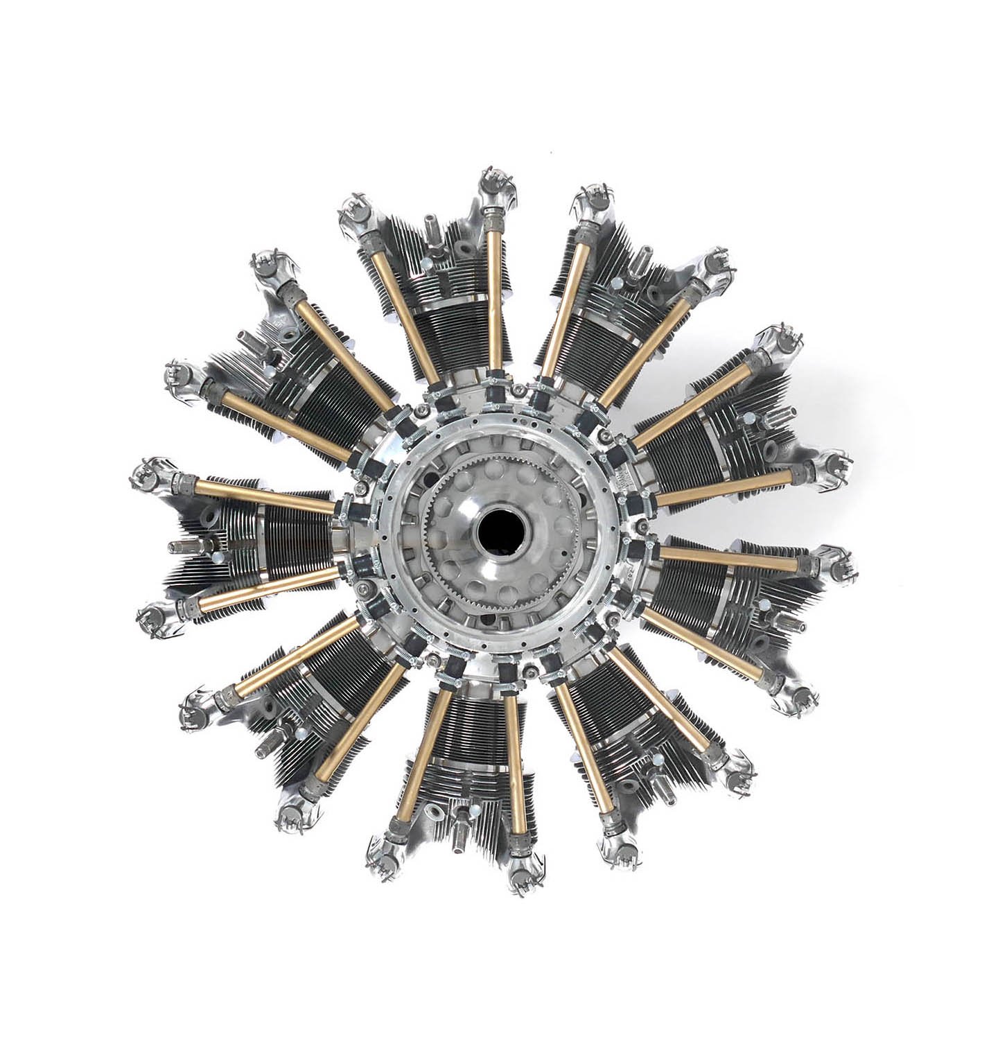 Ein Sternmotor eines sowjetischen Aufklärungshelikopters bildet das Kernstück dieses Meisterwerks.