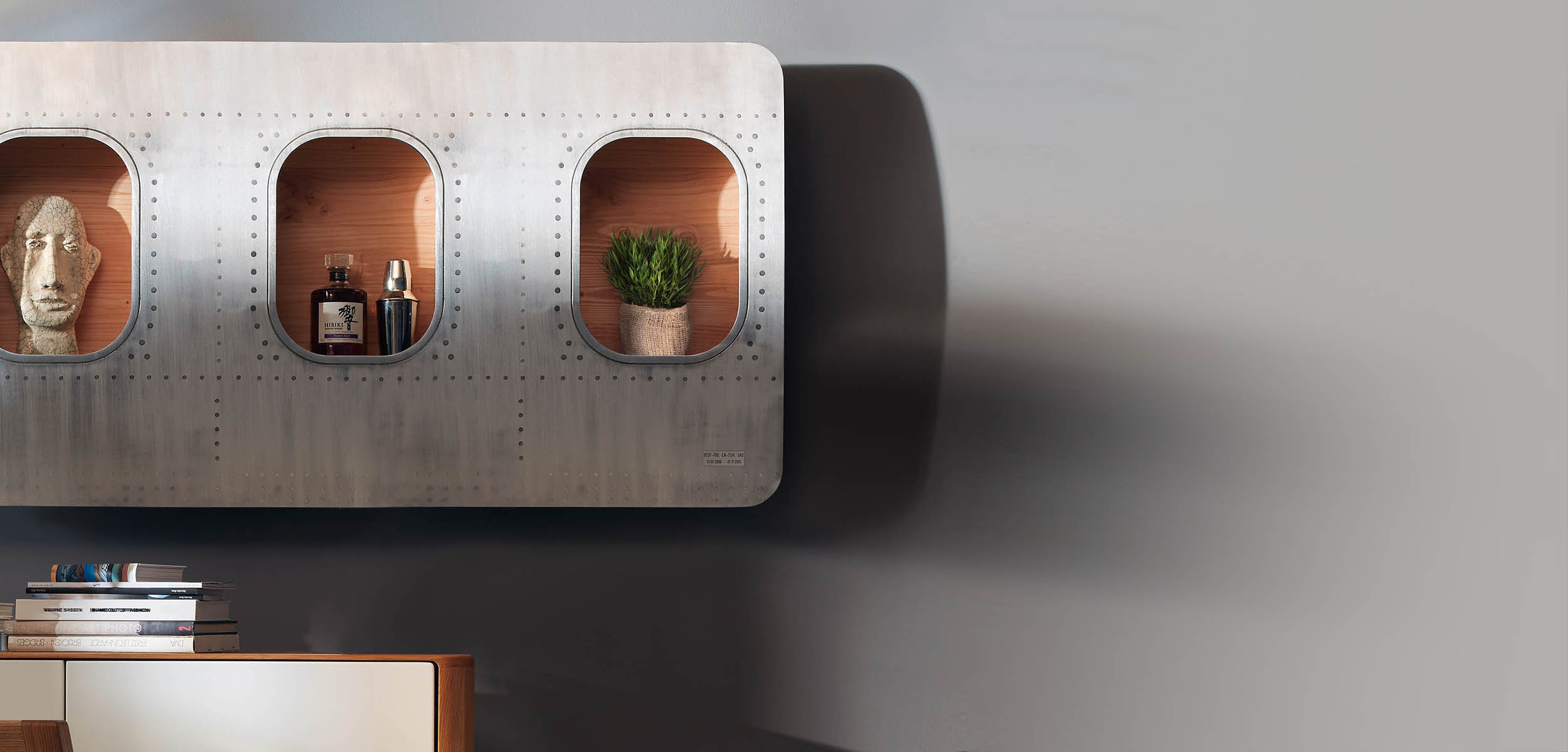 Entdecken Sie exklusive Wandbars aus originalen Flugzeugteilen – einzigartige Aviation Möbel für Ihr Zuhause, Ihre Bar oder Ihr Büro. Unsere Flugzeug-Wandbars vereinen außergewöhnliches Upcycling-Design mit hochwertiger Handwerkskunst. Gefertigt aus echten Flugzeugkomponenten wie Flugzeughaut, Triebwerksteilen oder Kabinenelementen, wird jede Wandbar zu einem echten Unikat mit Geschichte. Perfekt für Luftfahrt-Enthusiasten, Designliebhaber und Sammler, die auf der Suche nach einem besonderen Aviation Möbelstück sind. Ob als stilvolle Minibar, Weinregal oder dekoratives Highlight, unsere Wandbars bringen das Flair der Luftfahrt direkt in Ihre Räume. Entdecken Sie jetzt unsere exklusiven Modelle und holen Sie sich ein echtes Stück Flugzeug-Design nach Hause!